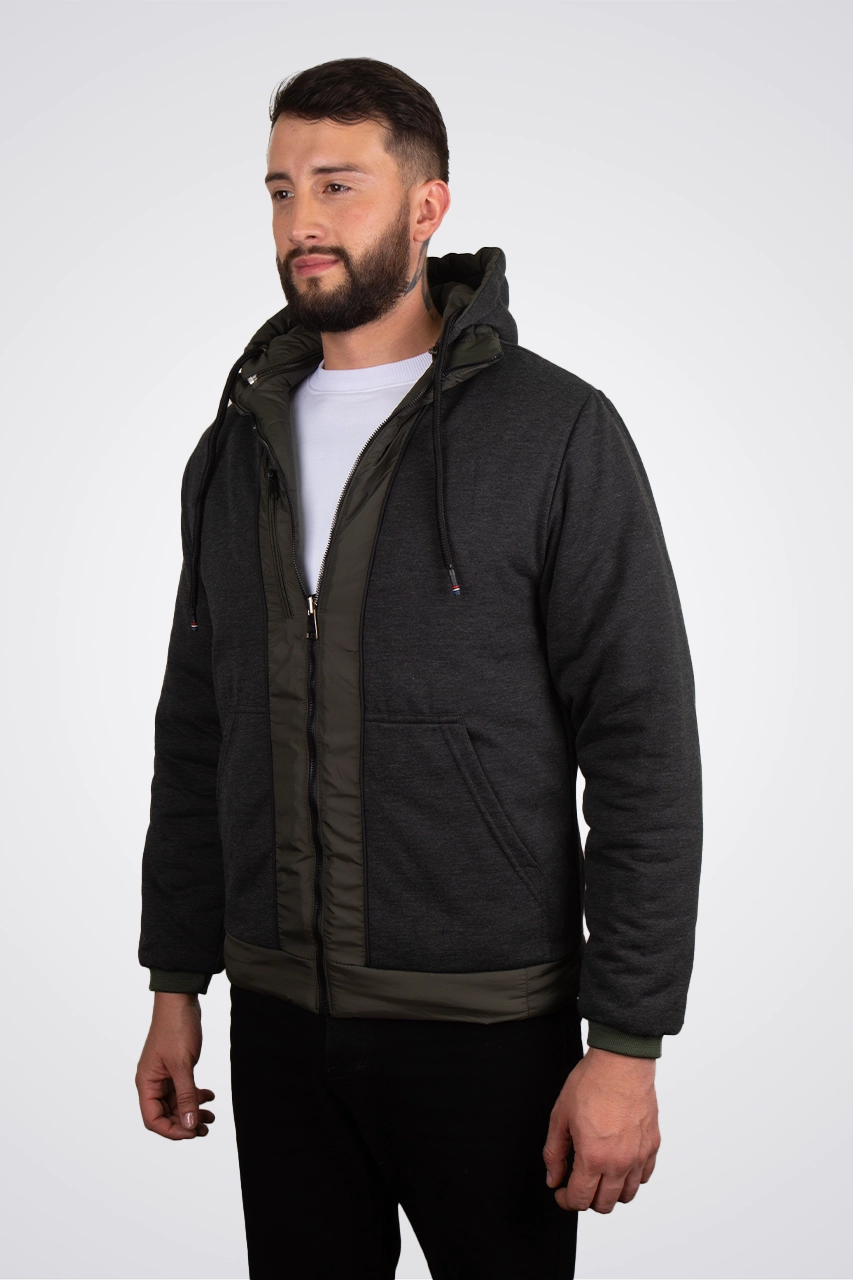Abrígate con estilo gracias a esta chaqueta doble faz que combina practicidad y diseño. Un lado en nylon resistente para un look moderno y funcional, y el reverso en algodón suave que aporta calidez y comodidad.